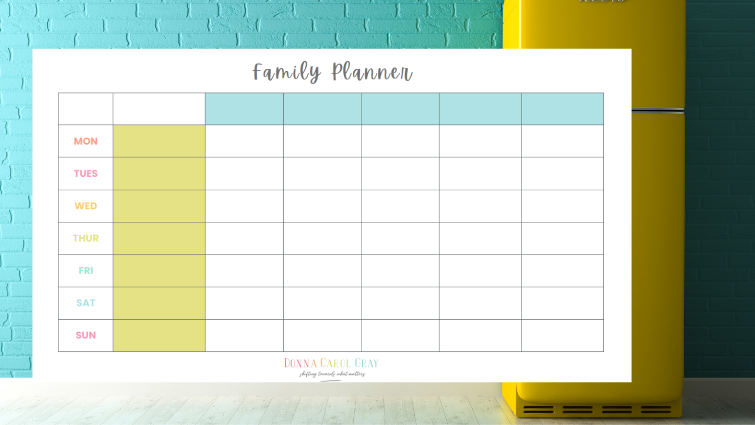 As a true A-type, I love a list, I love a planner and I like to see the plans in colour on the fridge, in my online calendar, in my dairy, in as many places as possible! It helps me to mentally prepare for the week and to keep better track of who is doing what, when, what needs to be packed for school and extra murals each day, when baby sitters are needed, etc. I also include our evening meals along the side so everyone knows that to expect for dinner!